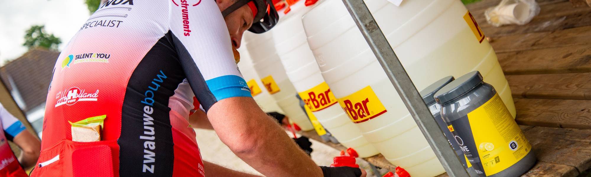Het is sterk aan te bevelen om te trainen met de sportvoeding, die jij ook gaat gebruiken tijdens de Tour d'Utrecht. Het advies is om gemiddeld iets meer dan 60 gram koolhydraten per uur in te nemen. Het is belangrijk om vanaf de start goed te blijven aanvullen. Als je pas vanaf het 2e of 3e uur begint, ben je al te laat! Probeer een vast patroon aan te houden; plan bij voorkeur een inname- moment iedere 20 á 30 minuten. Merk je tijdens de training/wedstrijd dat je meer behoefte hebt aan energie, dan kun je dit aanvullen tot 90 gram koolhydraten per uur. Dit kun je het makkelijkst doen door bijvoorbeeld een halve bidon meer Powerbar Isoactive te drinken. Wees er zeker van dat je niet meer dan 90 gram koolhydraten per uur in neemt!
