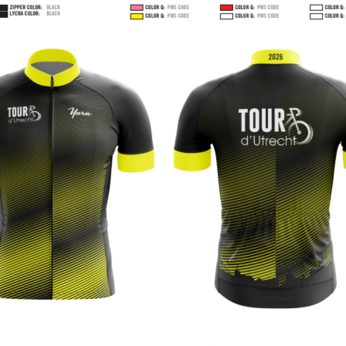 Wil jij van top tot teen in de stijl van de Tour d'Utrecht aan de start verschijnen op zondag 5 juli 2026? Op deze pagina lees je meer over de wielerkleding die je tijdens de inschrijving kan aanschaffen. De wielerkleding kan je op zondag 5 juli 2026 op het startterrein ophalen bij de infobalie.